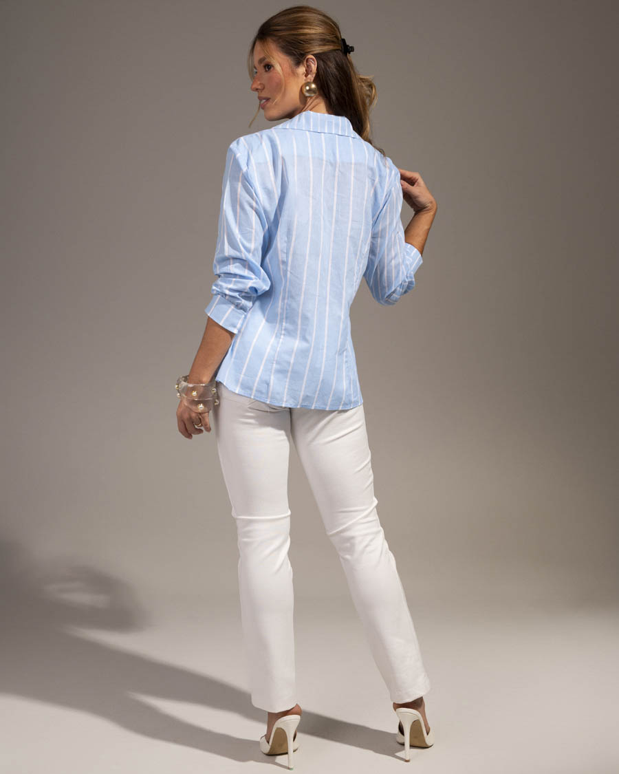 Delicada e atemporal, esta camisa listrada composê é a escolha perfeita para produções elegantes no dia a dia ou ocasiões especiais. Com design sofisticado, as listras trazem um visual moderno e versátil, fácil de combinar.