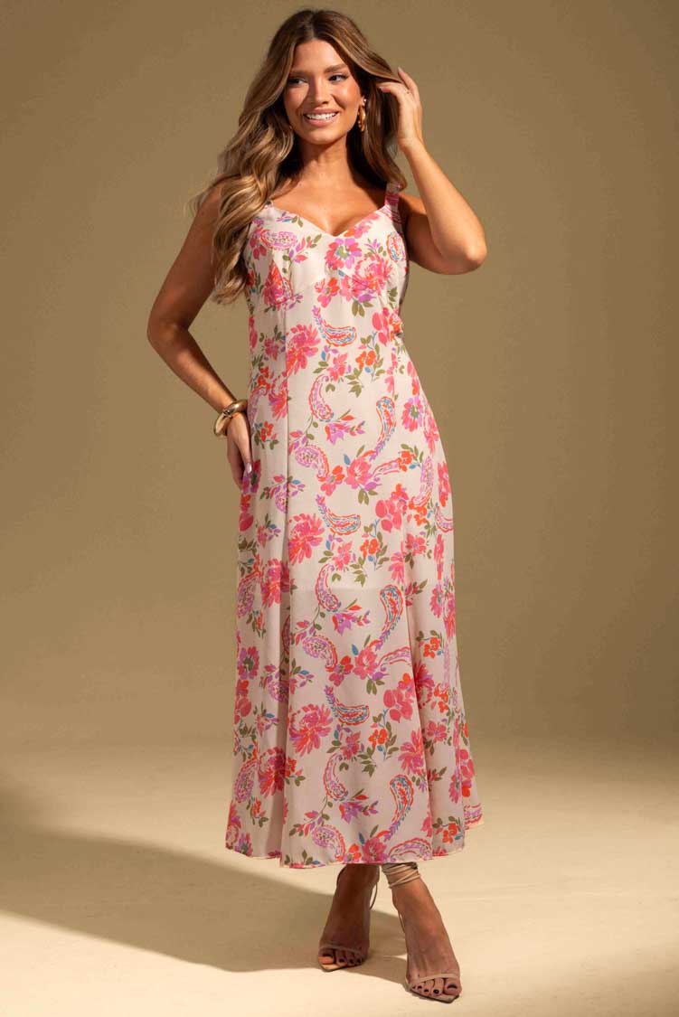 ✨ Vestido de alças, com caimento fluido e estampa floral delicada, trazendo leveza e elegância ao visual.