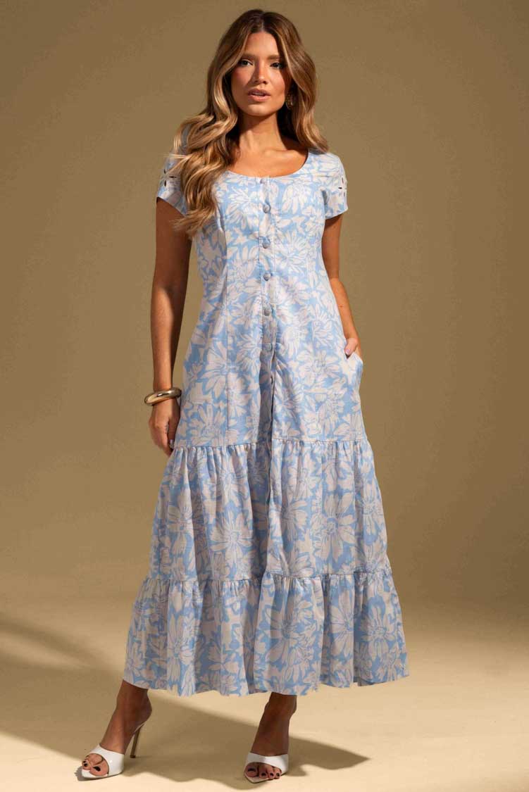 Elegante e delicado, o Vestido LC Carol é confeccionado em cambraia 100% algodão, um tecido leve e confortável que proporciona frescor e um caimento suave.