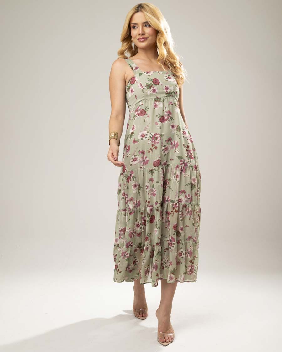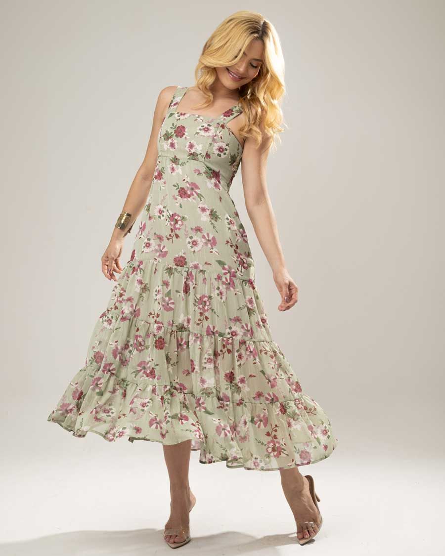 Vestido confeccionado em crepe leve, com estampa de folhas enriquecida por delicados detalhes em foil dourados, que adicionam sofisticação e um brilho sutil à peça. Possui modelagem confortável e caimento fluido, valorizando a silhueta com elegância. Versátil e atemporal, é ideal para produções diurnas ou noturnas, passeios, eventos casuais e ocasiões especiais que pedem charme e leveza.